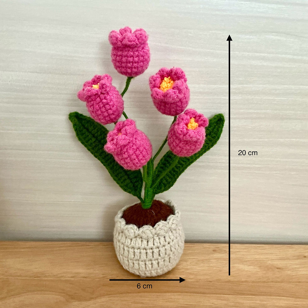 Tulip Blaze Pot – Handmade Crochet Tulip Arrangement - Pink